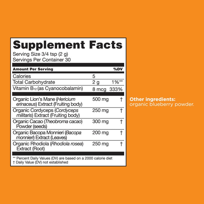 7 genius adaptogens in an organic caffeine-free high dose (1500 mg) blend shown to increase focus, productivity and concentration in every smooth scoop.