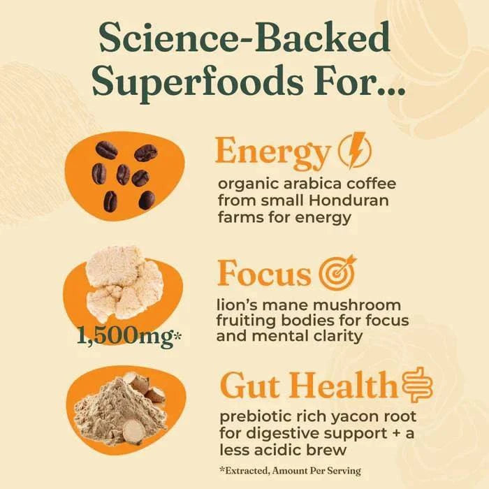 Every scoop is infused with Lion’s Mane mushroom, used for centuries to support brain function and memory. Pair that with the natural mood-lifting effects of coffee, and you’ve got a daily ritual that makes you feel clear, productive, and uplifted. Customers often tell us: “I didn’t just feel awake — I felt sharp and ready to tackle the day.”